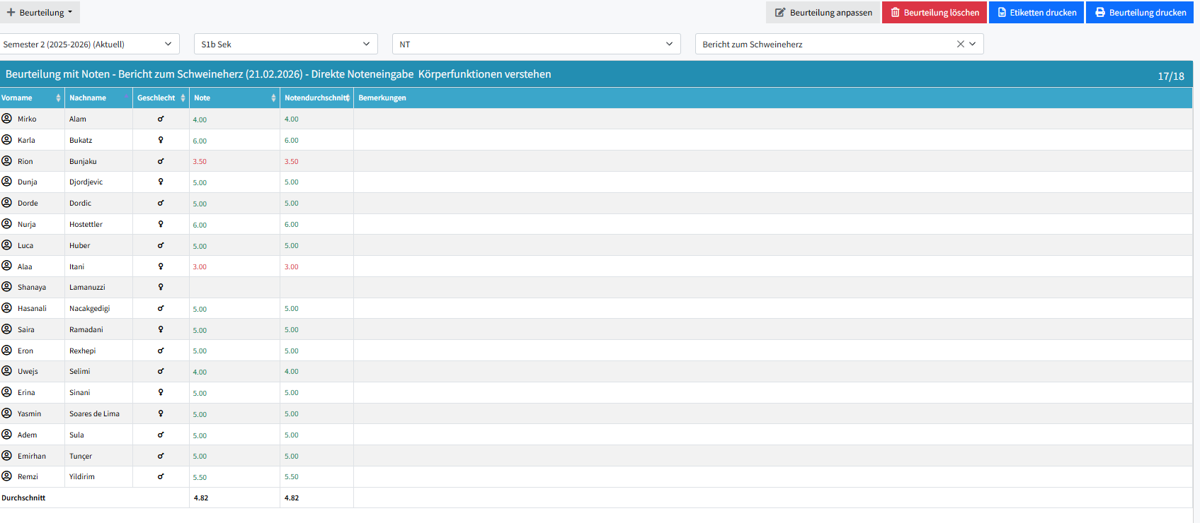 Ich hätte gerne auf den ersten Blick die Gewichtung der Prüfung ebenfalls sichtbar. Momentan ist das "Semester - Klasse - Fach - Titel der Beurteilung" sichtbar (siehe Screenshot im Anhang). Da hätte es rechts noch Platz für die Gewichtung (1x, 2x, 0.25x, 0.5x). Ich möchte gleich auf den ersten Blick sehen, wie ich oder eine FLP die Beurteilung gewichtet!