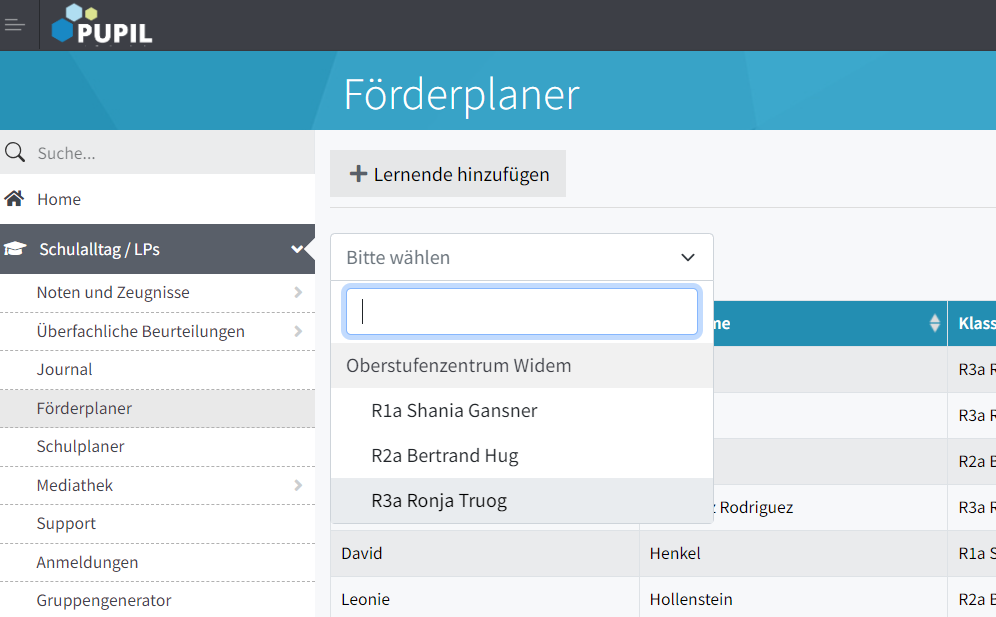 Der Förderplaner wird von ganz verschiedenen ISF-LP genutzt, jedoch kann pro SuS nur ein Dossier erstellt werden.