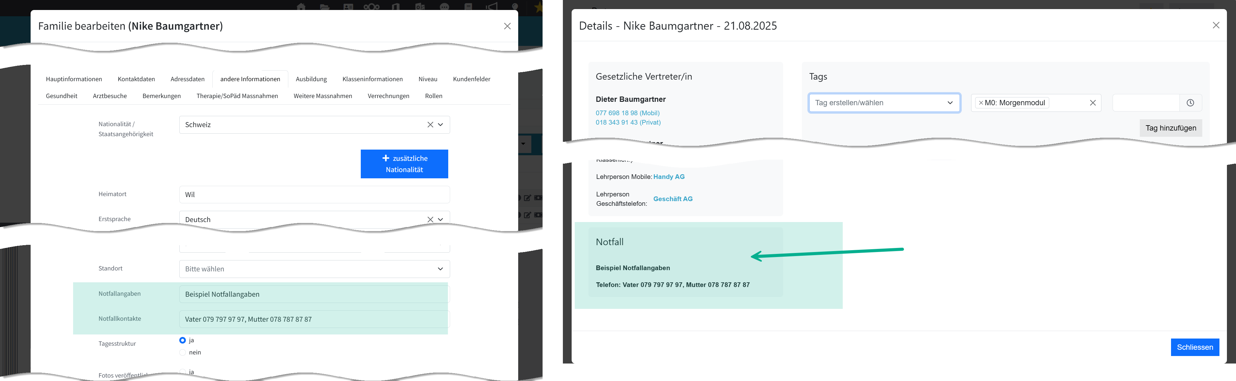 Be den Tagesstrukturen sehen die Betreuungspersonen unter Details nur die Kontaktdaten der gesetzlichen Vertreter. Falls dies nicht erreichbar sind , können die Eltern uns zusätzlich einen Notfallkontakt angeben. Ist es möglich, dort eine zusätzliches Kästchen mit einem Notfallkontakt (Grosseltern, Nachbarin, etc.) hinzuzufügen.